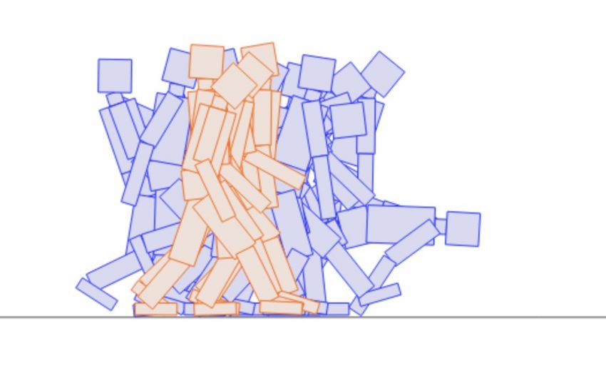 Evolving creatures walk better and better. Created by Rafael Matsunaga