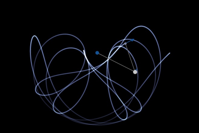 A slick simulation of particles flying around a black hole. Created by Ricky Reusser.