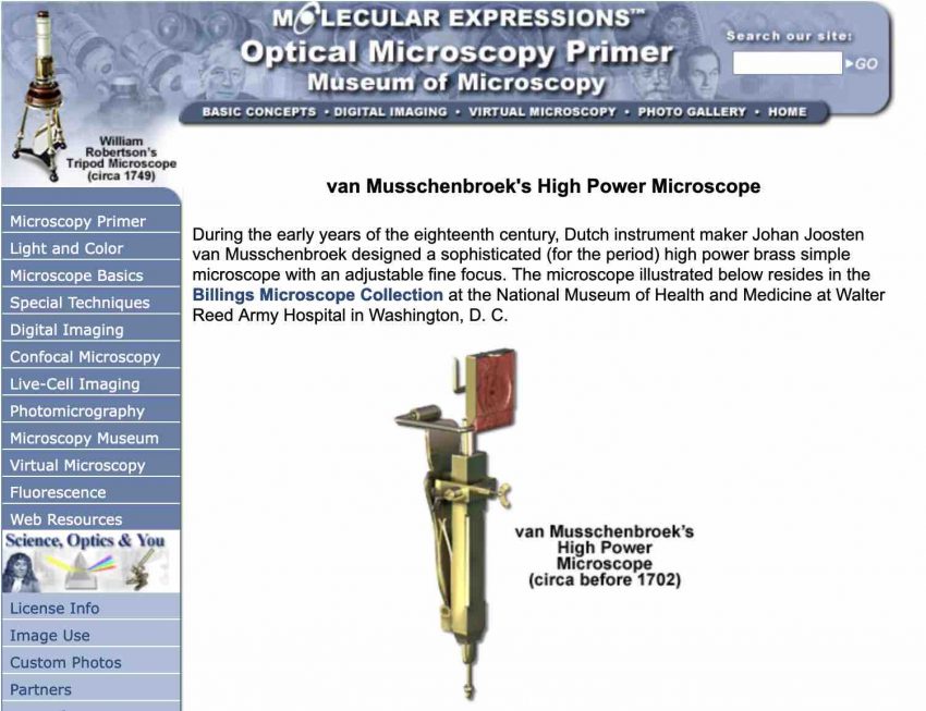 Many, many pages explaining the history of microscopes and how they work. Occasionally has some interactive simulations mixed in. Created by Michael W. Davidson.