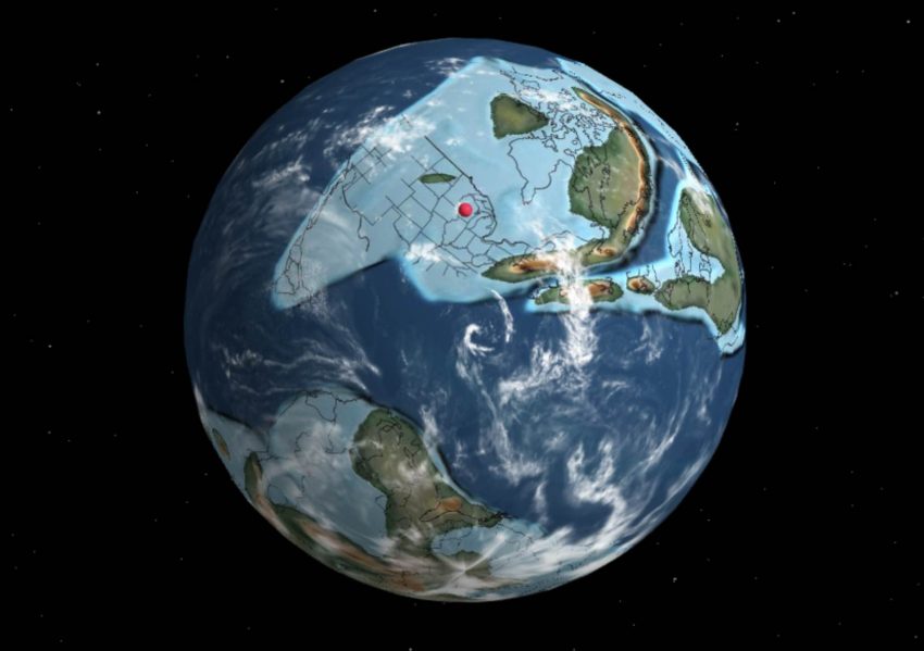 See a globe of earth, but back in history, millions of years ago. Watch the techtonic plates move, and see where in Pangaea your house was.